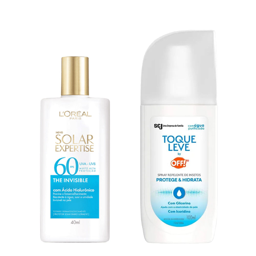 Kit Protetor Solar L’Oréal Paris FPS 60 The Invisible 40ml + Repelente Off! 100ml Spray
