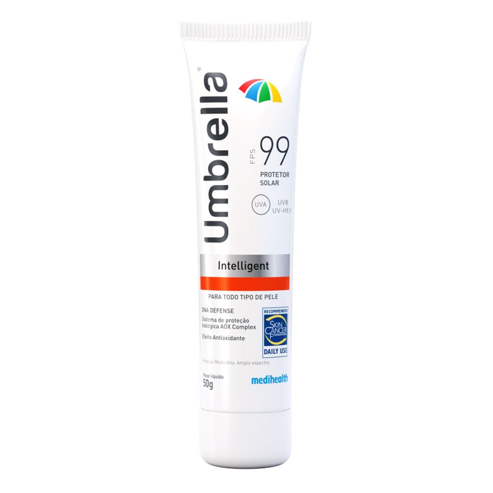 Protetor Solar Umbrella Intelligent 99 FPS 50g: Defesa diária contra raios UV. Leve e radiante para peles saudáveis.
