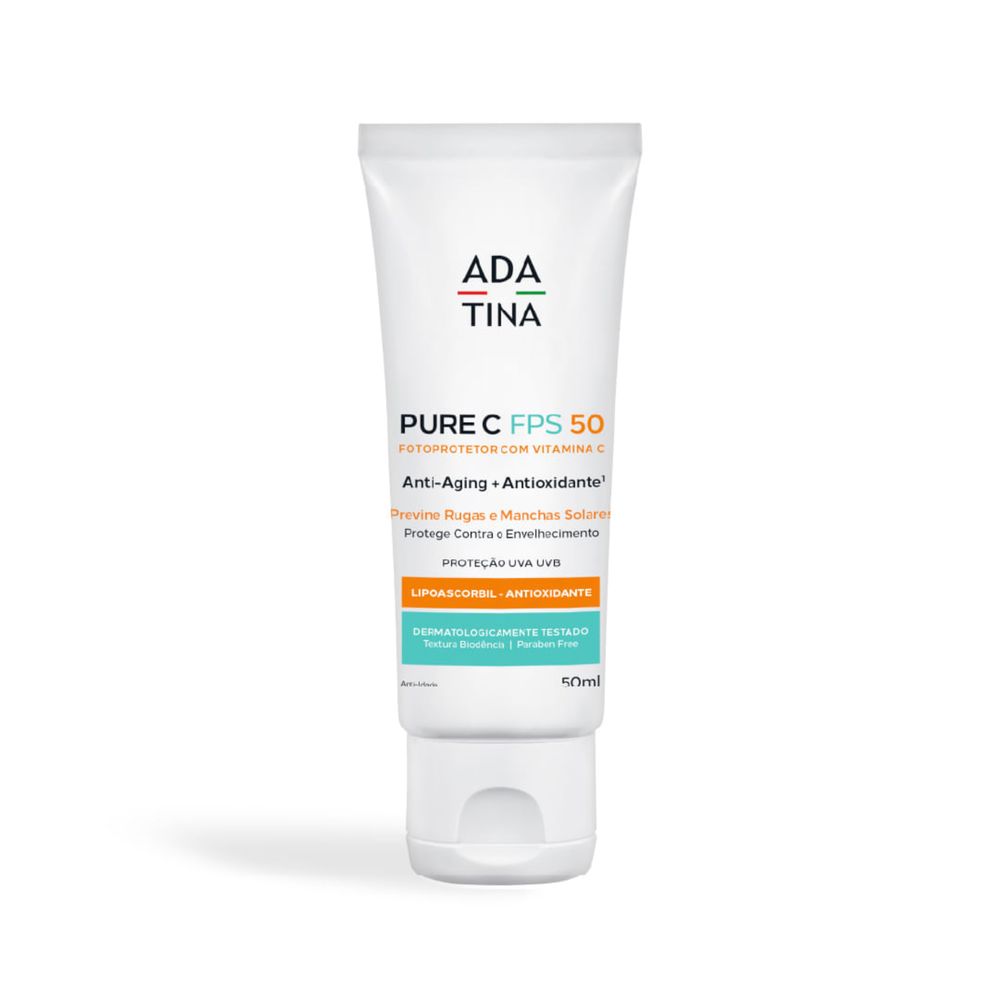 Vitamina C e Niacinamida Clareadora Pure C FPS 50 é um protetor solar poderoso com alta concentração de Vitamina C e Niacinamida Clareadora, formulado para proteger a pele contra o envelhecimento causado pela exposição ao sol. Ele previne o surgimento de rugas, manchas solares e escuras, enquanto sua textura leve e de rápida absorção oferece um toque seco, proporcionando conforto e eficácia no cuidado diário.Menos Manchas, Rugas e Envelhecimento Pure C FPS 50 combina 4 antioxidantes concentrados — Vitamina C, Niacinamida Clareadora, Vitamina E e Difendiox Antioxidante —, Pure C FPS 50 promove um rejuvenescimento intensivo, combatendo os radicais livres responsáveis por manchas, rugas profundas e a perda de colágeno e elastina. Com o uso diário, a pele fica visivelmente mais clara, iluminada, firme e elástica, revelando um aspecto saudável e radiante.Tecnologia Solent® Tripla Proteção Solar 12 Horas UVA, UVB e Anti-UVA1 Longo A tecnologia Solent® , exclusiva de ADA TINA, assegura tripla proteção altamente duradoura para a pele. Com extrema eficácia de 12H de proteção UVA, UVB e Tinosorb® M Anti-UVA1 Longo, além de também contar com 12 horas de fotoestabilidade. Isso porque, sua combinação sinérgica de filtros solares intensamente fotoestáveis garantem máxima proteção para a pele sem que sejam necessárias tantas reaplicações ou retoques durante o dia, salvo em contato com água ou sudorese intensa. Além disso, os protetores solares ADA TINA são muito mais concentrados! *A aplicação de apenas 1 dedo, equivalente a 1g de produto, é suficiente para proteger todo o rosto e atingir o FPS declarado na embalagem do produto, ou seja, para conseguir a proteção exata e perfeita! Tecnologia Difendiox® Antioxidante O Difendiox® uma tecnologia concentrada em oleuropeína com 14 polifenóis (substâncias orgânicas antioxidantes e anti-inflamatórias), com uma potente ação antioxidante capaz de proteger a pele contra manchas e envelhecimento precoce causado pela radiação solar UVA e UVB.Esse ingrediente exclusivo da Ada Tina foi desenvolvido em parceria com a Università di Pisa, na Itália, e não só combate os malefícios da luz azul e luz visível como também ajuda a proteger o colágeno da pele, combatendo os sinais do envelhecimento precoce, como rugas, linhas de expressão e flacidez da pele, deixando-a radiante, rejuvenescida e livre de manchas.* Informações de acordo com as normas europeias da COLIPA, reconhecida pela ANVISA.Número de registro na Anvisa: 25351.148243/2017-01