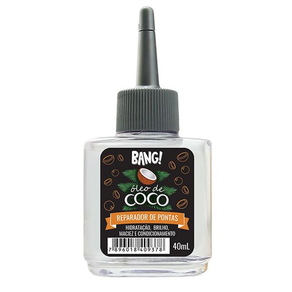 Reparador De Pontas Bang 40ml Coco O Reparador De Pontas Bang 40ml Coco é a solução perfeita para quem deseja cabelos saudáveis e hidratados. Enriquecido com óleo de coco, este reparador age diretamente nas pontas duplas, proporcionando um efeito restaurador imediato e deixando os fios macios e brilhantes. Benefícios:Hidratação intensa: O óleo de coco é conhecido por suas propriedades hidratantes, que ajudam a nutrir os fios e prevenir a quebra.Fácil aplicação: Com uma textura leve, o reparador se espalha facilmente, sem deixar resíduos pesados.Proteção contra danos: Forma uma barreira protetora nas pontas, evitando danos causados pelo calor e agressões externas.Dicas de Uso: Aplique uma pequena quantidade do reparador nas pontas dos cabelos limpos e secos ou úmidos. Para melhores resultados, use diariamente e combine com outros produtos da linha Bang. Imagens ilustrativas/orientativas. As cores dos produtos poderão variar conforme remessa do fabricante.