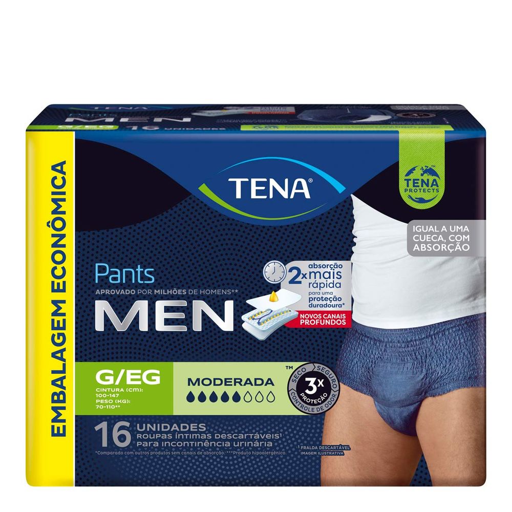 | Descrição PDP | Conheça Mais a Roupa Íntima Tena Pants Men E/EG 16 UnidadesDesenvolvida especialmente para homens com incontinência urinária moderada, a Tena Pants Men oferece uma combinação ideal de proteção, conforto e discrição. Com seu design similar ao de uma cueca tradicional, ela proporciona maior liberdade de movimento sem abrir mão da segurança contra vazamentos. Com tecnologia de controle de odores, a Roupa Íntima Tena Pants Men G/EG 16 Unidades oferece mais confiança e discrição em qualquer situação. Cada detalhe foi pensado para que homens ativos mantenham a qualidade de vida e o bem-estar, com a tranquilidade de um produto eficiente e fácil de usar. Veja os Benefícios da Tena Pants Men E/EGA Tena Pants Men E/EG combina tecnologia avançada com design pensado para oferecer 3 vezes mais proteção em relação aos produtos convencionais. Seu núcleo frontal de absorção rápida retém a urina instantaneamente, proporcionando segurança durante atividades diurnas e tranquilidade durante a noite. Inspirada na modelagem de uma cueca tradicional, ela se ajusta ao corpo de forma precisa e confortável, garantindo liberdade de movimento e uma sensação suave na pele. O tecido respirável e o sistema de neutralização de odores garantem frescor e discrição, permitindo que o usuário se sinta confiante em qualquer situação. Com cada detalhe pensado para homens ativos, a Roupa Íntima Tena Pants Men G/EG 16 Unidades é aprovada por milhões de homens ao redor do mundo. Seja para o dia ou para a noite, essa roupa íntima descartável proporciona conforto e segurança contínua, permitindo que você viva plenamente. Escolha Tena Pants Men e Viva a Liberdade!Com Tena Pants Men, você aproveita o dia com confiança e 3 vezes mais proteção. Desenvolvida especialmente para homens com incontinência moderada, essa roupa íntima combina tecnologia de absorção frontal eficiente e controle de odores, garantindo segurança em qualquer situação. Além disso, o material respirável proporciona um ajuste confortável e discreto, semelhante ao de uma cueca tradicional. Totalmente hipoalergênica e dermatologicamente testada, Tena Pants Men foi criada para minimizar riscos de irritação, cuidando da pele ao longo do uso prolongado. Seja em momentos de descanso ou durante atividades mais intensas, essa roupa íntima oferece um encaixe preciso e liberdade de movimento, graças aos elásticos suaves nas pernas e cintura, prevenindo vazamentos sem abrir mão do conforto. Roupa Íntima Descartável X Outros FormatosAo escolher uma solução para incontinência urinária, é essencial considerar os diferentes formatos disponíveis e como cada um se adapta às necessidades específicas do usuário. A roupa íntima descartável, como a Tena Pants Men G/EG, oferece vantagens que se destacam em comparação com outros tipos de produtos tradicionais, como fraldas abertas e absorventes comuns. Enquanto as fraldas tradicionais são indicadas para usuários com mobilidade muito limitada ou acamados, a roupa íntima descartável oferece mais liberdade e conforto, especialmente para homens ativos. Seu formato similar ao de uma cueca proporciona discrição sob a roupa e permite maior liberdade de movimento, ideal para quem busca praticidade no dia a dia. Além disso, a Tena Pants Men conta com um núcleo de absorção frontal exclusivo para maior eficiência, algo que fraldas abertas e absorventes comuns não oferecem. O sistema de ajuste elástico ao redor da cintura e das pernas garante que a roupa íntima permaneça firme no corpo, evitando vazamentos e proporcionando uma experiência mais confortável e segura. Incontinência Urinária: Saiba MaisA incontinência urinária é uma condição mais comum do que se imagina e pode afetar homens de diferentes idades e estilos de vida. Caracteriza-se pela perda involuntária de urina, podendo ocorrer em situações variadas, como durante atividades físicas, mudanças bruscas de posição ou até durante o sono. Entre os tipos mais frequentes estão a incontinência de esforço, de urgência e a incontinência mista. Nos homens, essa condição pode estar associada a fatores como o envelhecimento, cirurgias na próstata, problemas neurológicos ou doenças crônicas. Lidar com a incontinência é essencial para manter a confiança e a qualidade de vida, especialmente para aqueles que desejam manter uma rotina ativa e socialmente engajada. Produtos como a Roupa Íntima Tena Pants Men G/EG 16 Unidades são desenvolvidos para proporcionar proteção e conforto, permitindo que o usuário viva com liberdade e segurança. Além de reduzir vazamentos e controlar odores, o uso de roupas íntimas descartáveis especialmente projetadas para homens garante mais discrição e bem-estar no dia a dia. Tipos de Incontinência UrináriaA incontinência urinária pode se manifestar de diversas maneiras, e cada tipo apresenta características específicas que exigem soluções personalizadas. Confira os principais tipos: