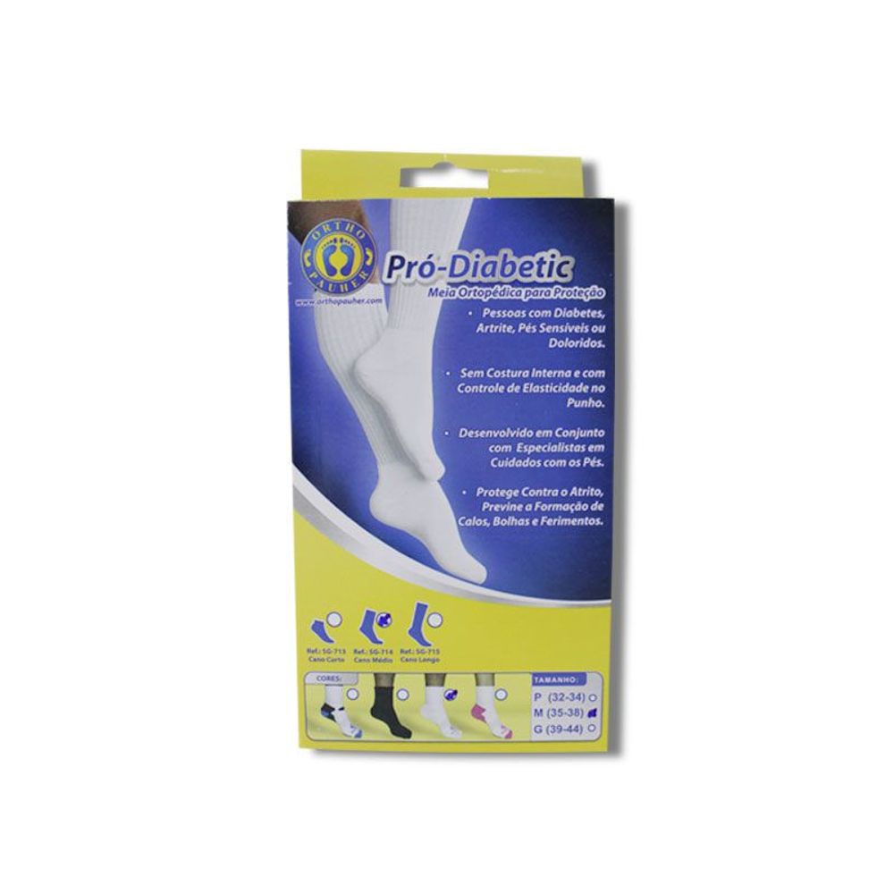 SG714 - Meia Ortopédica Pró-Diabetic Cano Médio - Cor: Branca Tam: M