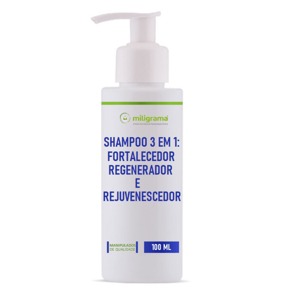 Shampoo 3 em 1: Fortalecedor, Regenerador e Rejuvenescedor 100ml