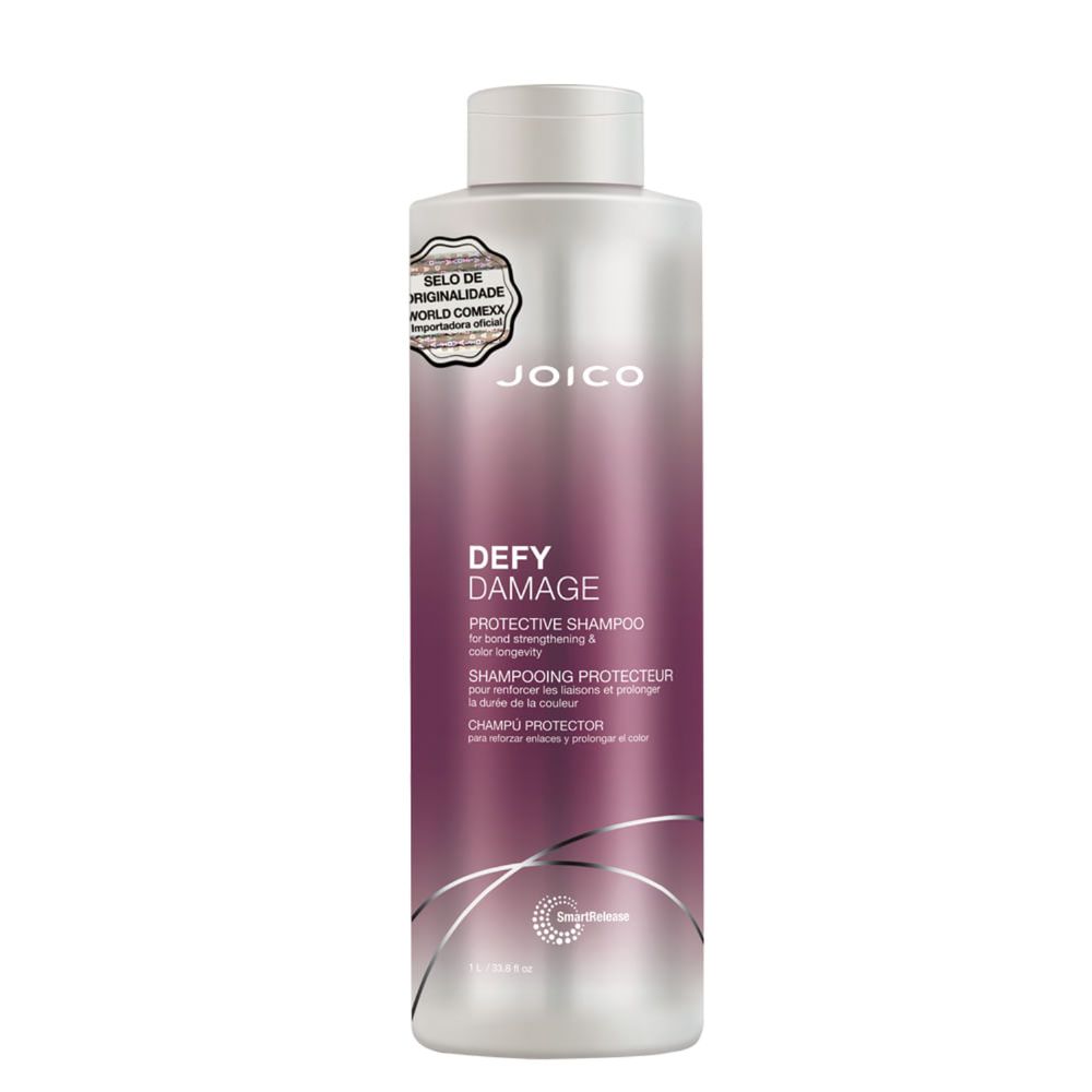 Shampoo Joico Defy Damage Protective 1000ml – Fortalecimento da Fibra Capilar, Proteção contra Danos e Durabilidade da CorShampoo indicado para todos os tipos de cabelo, principalmente para cabelos coloridos, o Shampoo Joico Defy Damage Protective com 1000ml limpa suavemente os fios, protege a fibra capilar contra danos diários e preserva a intensidade da cor. Sua fórmula avançada higieniza de forma delicada, sem comprometer a estrutura dos fios ou o tom da coloração. Desenvolvido com tecnologia de ponta, o Shampoo Joico Defy Damage Protective faz parte de uma linha inovadora voltada para a proteção e renovação dos fios frente a fatores externos como calor, processos químicos e radiação UV. A Arginina com ligação inteligente penetra profundamente na fibra capilar, fortalecendo os enlaces de proteína danificados, enquanto os Lipídios Protetores imitam os naturais do cabelo saudável para reforçar a cutícula e promover resistência. Além disso, o produto é livre de sulfatos SLS/SLES e possui certificação PETA, sendo 100% cruelty free.Benefícios do ShampooFortalece 3x a fibra capilar com reparo interno dos enlaces proteicos.Protege contra danos térmicos, químicos e UV, reduzindo até 90% das quebras futuras.Preserva a durabilidade e a luminosidade da cor por até 20 lavagens.Redução de 75% do frizz, graças ao selamento da cutícula capilar.Textura leve com espuma rica que limpa sem remover hidratação.Aumento de 180% no brilho e 100% mais maciez e sedosidade.Indicado para uso diário, sem agressão ao couro cabeludo.Ação/Resultado dos AtivosArginina com ligação inteligente: Reconecta e fortalece as pontes de dissulfeto na fibra capilar, promovendo reparo interno e resistência.Lipídios Protetores: Reconstroem a camada lipídica da cutícula, prevenindo desidratação e danos mecânicos.Óleo de Semente de Moringa: Rico em antioxidantes, vitaminas A e E e sílica, nutre profundamente e combate os radicais livres.Queratina hidrolisada: Penetra na estrutura capilar, preenchendo áreas danificadas e restaurando a resistência natural dos fios.Como Usar o Shampoo Joico Defy Damage Protective Molhe os cabelos completamente com água morna. Aplique uma quantidade pequena sobre o couro cabeludo. Massageie suavemente com movimentos circulares para ativar a circulação e espalhar o produto pelos fios. Deixe agir por 1 a 2 minutos para que os ativos penetrem na fibra capilar. Enxágue abundantemente até remover todo o resíduo.