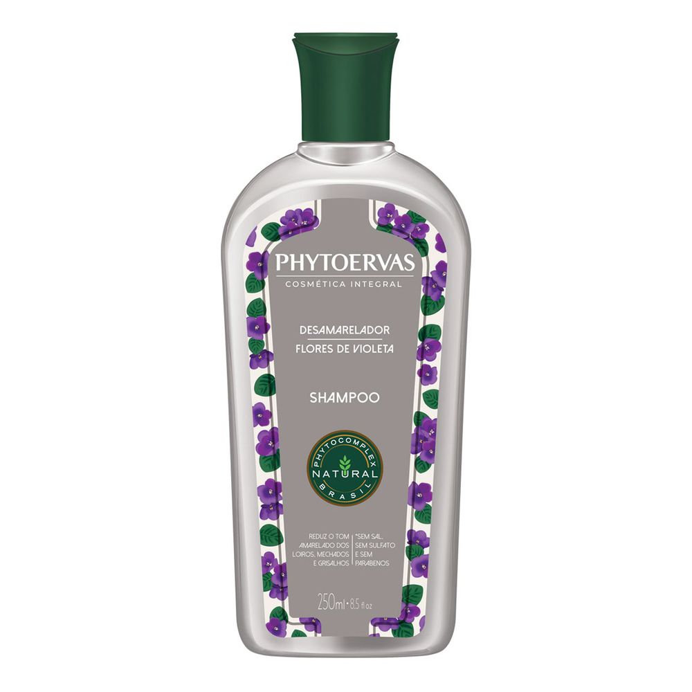 O shampoo Desamarelador Phytoervas Flores de Violeta remove gradativamente o amarelado que surge nos fios por efeito residual do cloro e poluição. Sua fórmula matiza gradativamente, restaurando o tom original para cabelos loiros, grisalhos e com mechas, deixando os fios mais luminosos e bonitos.