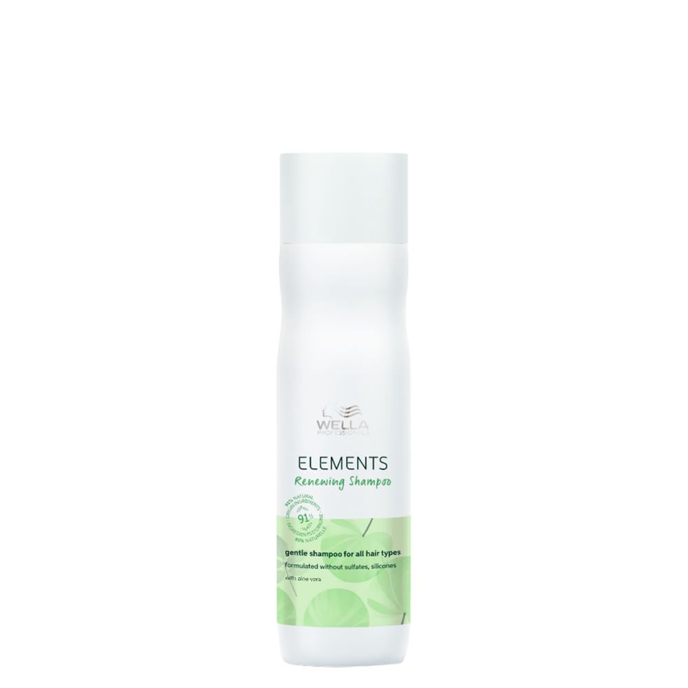 Shampoo Wella Professionals Elements Renewing 250ml – Limpeza Suave, Brilho Natural e Maciez IntensaShampoo indicado para todos os tipos de cabelo, o Wella Professionals Elements Renewing Shampoo com 250ml limpa suavemente o couro cabeludo e os fios, promovendo uma sensação profunda de nutrição, brilho intenso e maciez natural, mesmo em cabelos tratados quimicamente como coloridos ou com queratina.A linha Elements Renewing prioriza ingredientes de origem vegetal, com até 91% de componentes naturais, para uma limpeza delicada que preserva a hidratação natural dos fios. Formulado sem sulfatos e silicones, o shampoo incorpora a Tecnologia Renewing para revitalizar a fibra capilar, preparando os cabelos para receber nutrição equilibrada. O produto é vegano, cruelty free, dermatologicamente testado e vem em embalagem sustentável com plástico reciclado, assegurando cuidados capilares responsáveis e eficazes.Benefícios do ShampooLimpeza suave que remove impurezas sem ressecar a fibra capilar ou o couro cabeludo, ideal para uso diário.Aumento de até 30% na maciez dos fios quando combinado com o condicionador da linha, promovendo sedosidade duradoura.Redução significativa do frizz em cabelos tratados, restaurando o brilho natural e o controle de volume.Hidratação prolongada que protege a cutícula capilar contra danos futuros causados por processos químicos.Fragrância leve e agradável, com formação de espuma luxuosa que facilita a aplicação e enxágue.Compatibilidade com todos os tipos de cabelo, inclusive aqueles com alta porosidade capilar.Ação/Resultado dos AtivosÓleo de Argan: Nutre intensamente a fibra capilar, reduzindo frizz e conferindo brilho intenso aos fios.Panthenol: Age como pró-vitamina B5, hidratando e selando a cutícula capilar para maior elasticidade.Glicerina: Retém umidade natural, auxiliando na manutenção do equilíbrio hídrico dos fios.Vitamina E: Antioxidante que protege contra danos oxidativos, fortalecendo a saúde geral do cabelo.Como Usar o Shampoo Wella Professionals Elements RenewingMolhe bem os cabelos com água morna para abrir as cutículas.Aplique uma pequena quantidade do shampoo no couro cabeludo, massageando suavemente até formar espuma.Deixe agir por 1-2 minutos para que os ativos penetrem nos fios e promovam nutrição profunda.Enxágue abundantemente com água fria para selar a cutícula e potencializar o brilho.