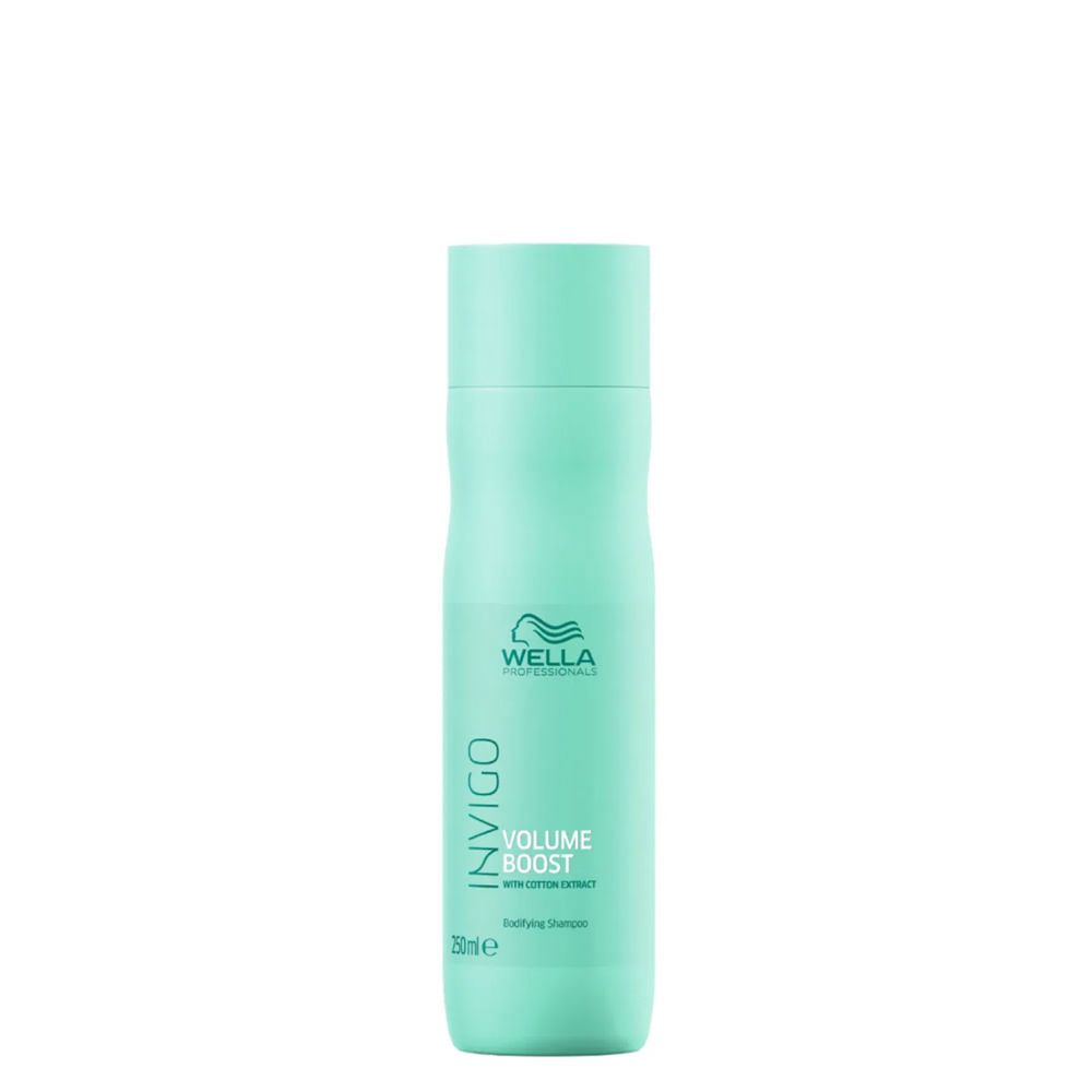 Shampoo Wella Professionals Invigo Volume Boost 250ml – Volume Leve, Maciez e Brilho IntensoShampoo indicado para cabelos finos ou sem volume, o Wella Professionals Invigo Volume Boost com 250ml proporciona volume leve e duradouro, além de limpar suavemente os fios sem pesar, garantindo movimento flexível e natural. A fragrância floral verde fresca confere um toque irresistível de frescor aos cabelos.A Linha Invigo Volume Boost é desenvolvida para transformar a estrutura fina dos fios, oferecendo resultados profissionais com tecnologia avançada. A Volume Boost-Blend associada aos polímeros Bodifying Spring Force envolve a fibra capilar, selando a cutícula para criar volume resistente que mantém a integridade dos fios durante a escovação. O produto é Cruelty Free e livre de sulfatos agressivos, ideal para uma rotina leve e eficaz para cabelos com pouca densidade.Benefícios do ShampooProporciona volume visível desde a primeira lavagem, ideal para cabelos finos e sem sustentação.Redução do frizz e aumento significativo de brilho intenso graças à tecnologia de fortalecimento da fibra capilar.Estabiliza a estrutura dos fios, prevenindo as quebras durante a escovação e modelagem térmica.Maciez prolongada com Extrato de Algodão, mantendo o equilíbrio hídrico sem comprometer o volume.Fórmula leve que não sobrecarrega os fios, permitindo modelagem natural com movimento fluido.Proteção da cutícula capilar contra danos ambientais e mecânicos durante o dia a dia.Limpeza equilibrada que remove impurezas sem agredir a hidratação natural do couro cabeludo.Ação/Resultado dos AtivosVolume Boost-Blend: Tecnologia exclusiva que envolve a fibra capilar, criando uma estrutura leve capaz de sustentar volume duradouro sem ressecar os fios.Polímeros Bodifying Spring Force: Formam uma rede flexível nos fios, garantindo resistência durante a escovação e mantendo o volume mesmo em alta umidade.Extrato de Algodão: Age como umectante natural, repõe lipídios essenciais e estabiliza a umidade interna da cutícula capilar.Como Usar o Shampoo Wella Professionals Invigo Volume Boost Molhe bem os cabelos com água morna. Aplique uma quantidade moderada do shampoo, massageando suavemente o couro cabeludo e alongando até as pontas. Deixe agir por 1-2 minutos para ativação dos polímeros na fibra capilar. Enxágue abundantemente até total remoção do produto. Para resultados máximos, complete a rotina com a Máscara e o Condicionador da Linha Invigo Volume Boost.