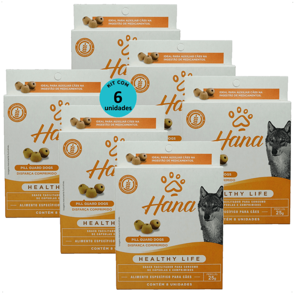 SNACK HANA HEALTHY LIFE PILL GUARD DISFARÇA COMPRIMIDOS 25G PARA CÃES KIT COM 6