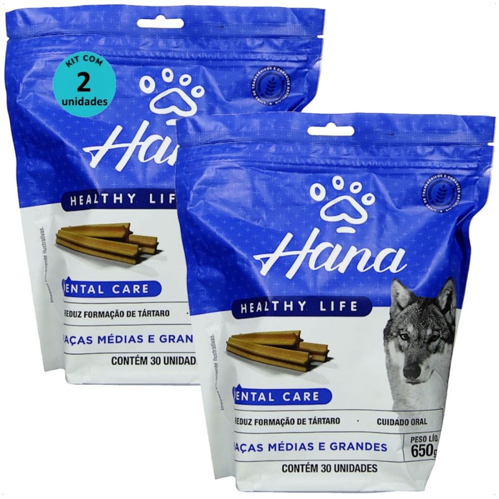 SNACK HANA LIFE DENTAL CARE CÃES ADULTOS RAÇAS MÉDIAS E GRANDES 650G KIT COM 2