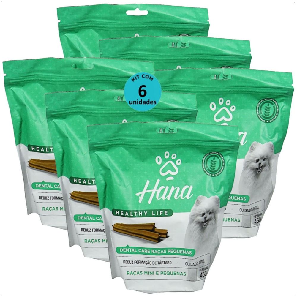 SNACK HANA LIFE DENTAL CARE CÃES ADULTOS RAÇAS MINI E PEQUENAS 450G KIT COM 6