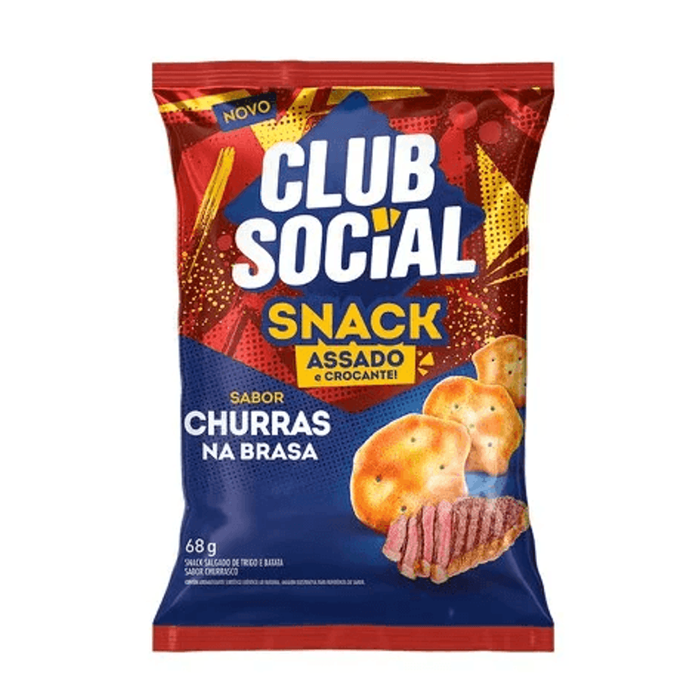 Snack salgado sabor churrasco na brasa com 68g - Club Social