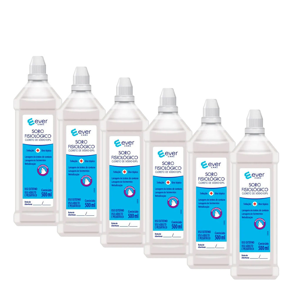 Kit Soro Fisiológico Ever Care Bico Dosador 6 Unidades de 500ml