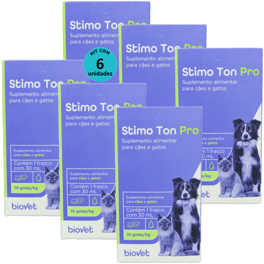 Stimo Ton Pro 30ml Para Cães e Gatos Biovet Kit Com 6