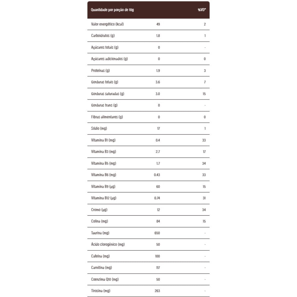 Em uma xícara, adicione um sachê (10g) com água quente (100ml). Pode ser consumido 30 minutos antes da atividade física ou cognitiva ou em jejum ao acordar.