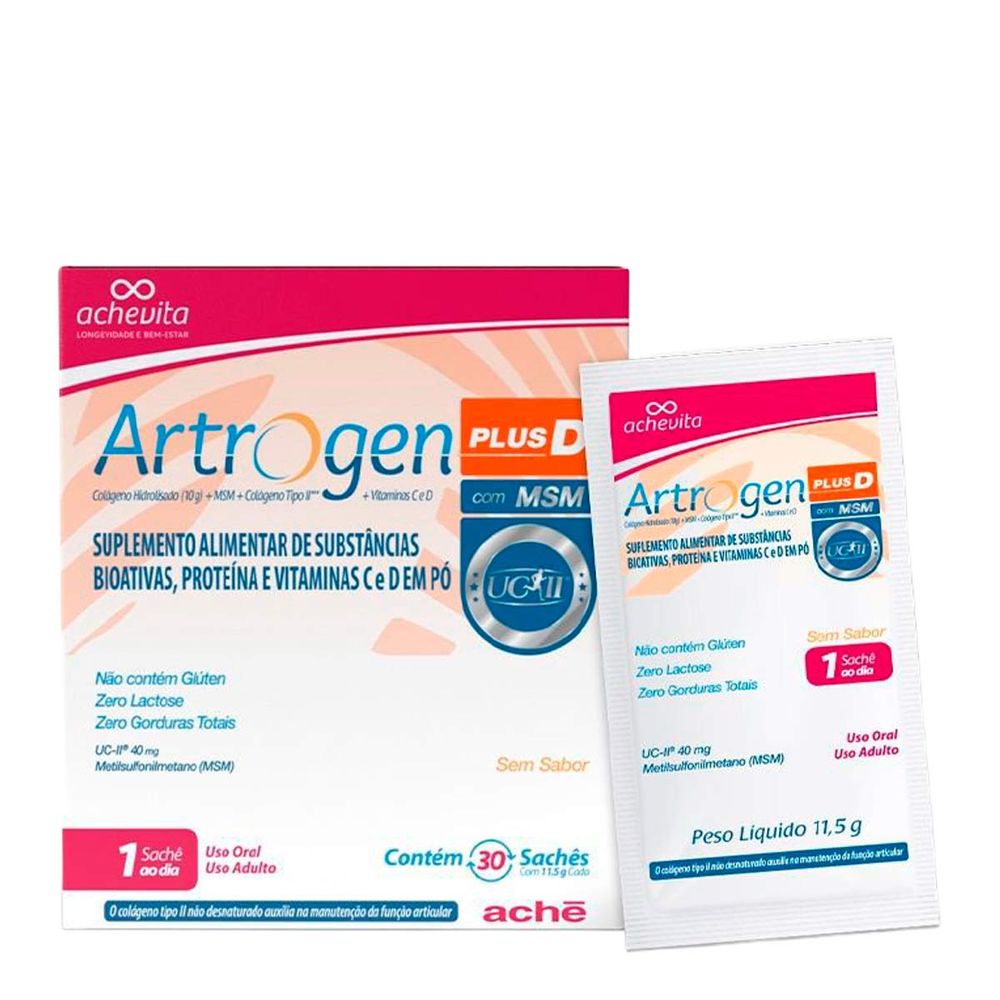 Suplemento Alimentar Artrogen Plus D Achevita Sem Sabor 30 Unidades