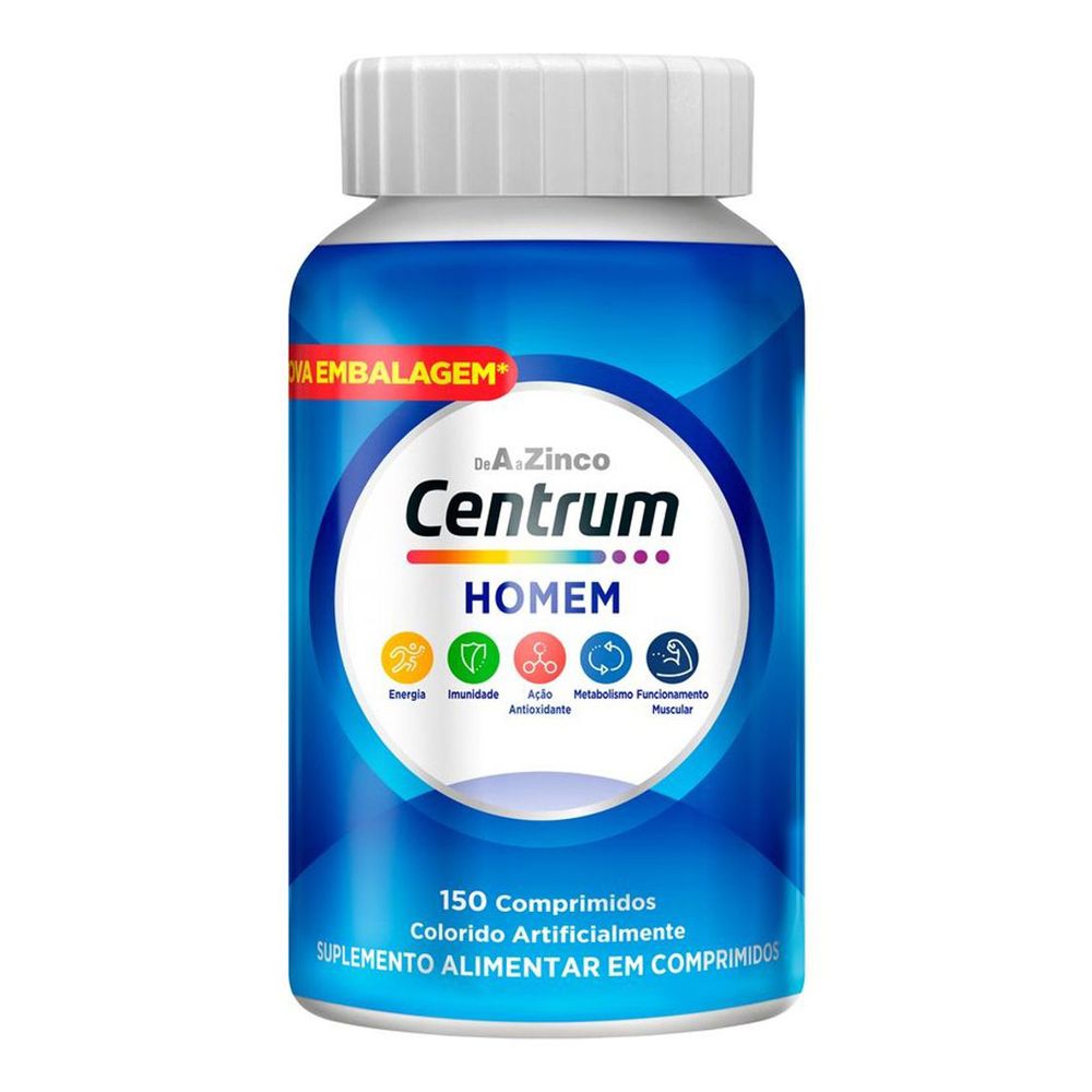 Suplemento Alimentar Centrum Gender Homem A a Zinco Vitaminas e Minerais 150 Comprimidos