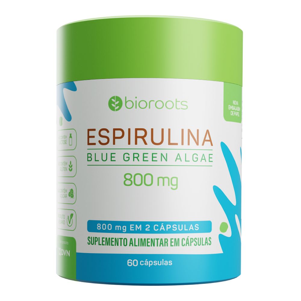 Suplemento Alimentar Espirulina 400mg Bioroots 60 Cápsulas