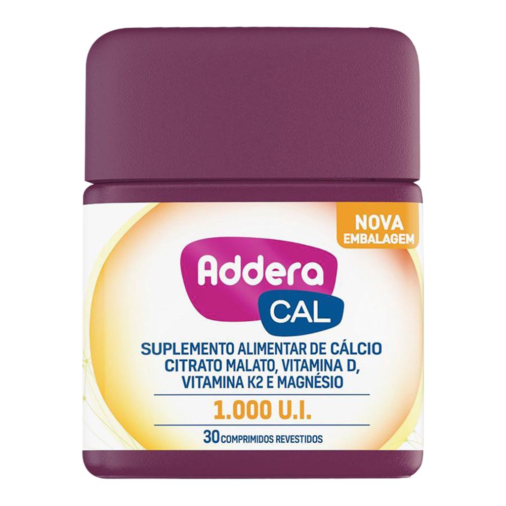 A Vitamina D Addera + Cálcio 1.000UI - 30 comprimidos é um suplemento alimentar, formulado à base de vitamina D, cálcio, vitamina K2 e magnésio. Auxilia na formação e manutenção de ossos e dentes saudáveis, além de fortalecer e promover um bom funcionamento dos músculos.