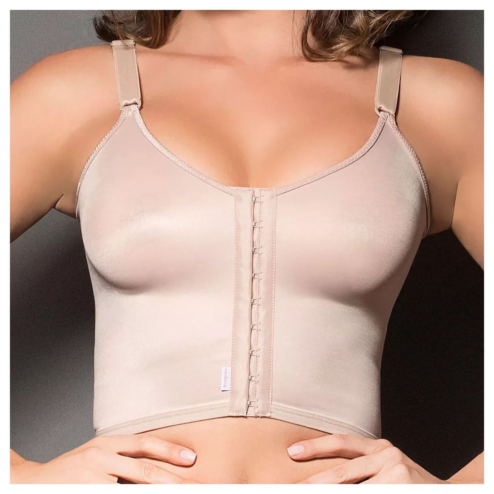 Características - Sutiã tipo Longo - Bojo pré moldado sem costura na Mama, com aderência total; - Alças com largura compatível com o manequim; Fechamento Frontal em colchetes de dupla regulagem. Tecido: Cetinete Cetinete(90% Poliamida / 10% Elastano) Esse Tecido especialmente desenvolvido para lingerie de compressão garante maior durabilidade, resistência e elasticidade além de melhor modelagem com maior sustentação. Não perdendo a função após a lavagem. Por ter como característica a baixa absorção de água, proporciona uma maior sensação de frescor, e a livre respiração da pele. Reg. ANVISA: 80559239001 Indicação de Uso: - Pós-operatório; - Mastectomia - Mamoplastia de Redução ou Aumento de Mama;