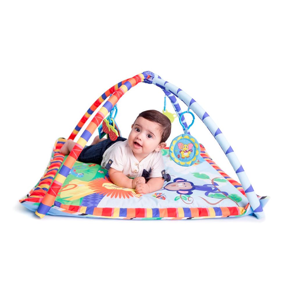 O Tapete de Atividades Ginásio Holiday está disponível em duas versões coloridas e confortáveis e ainda possui brinquedos para estimular o desenvolvimento sensorial e motor do bebê.