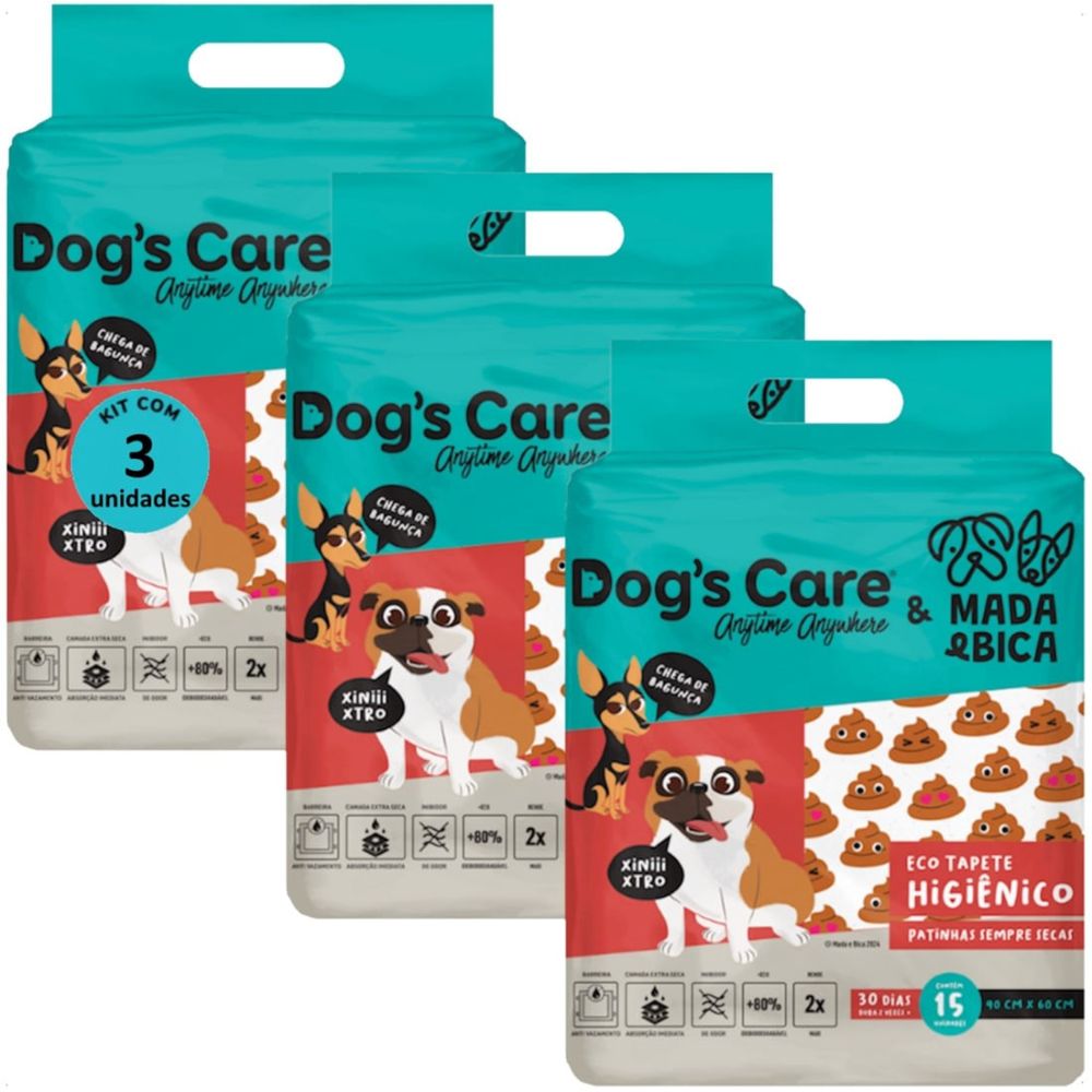 TAPETE HIGIÊNICO DOGS CARE FAMÍLIA MADA E BICA 15 UN 90X60 CM KIT COM 3