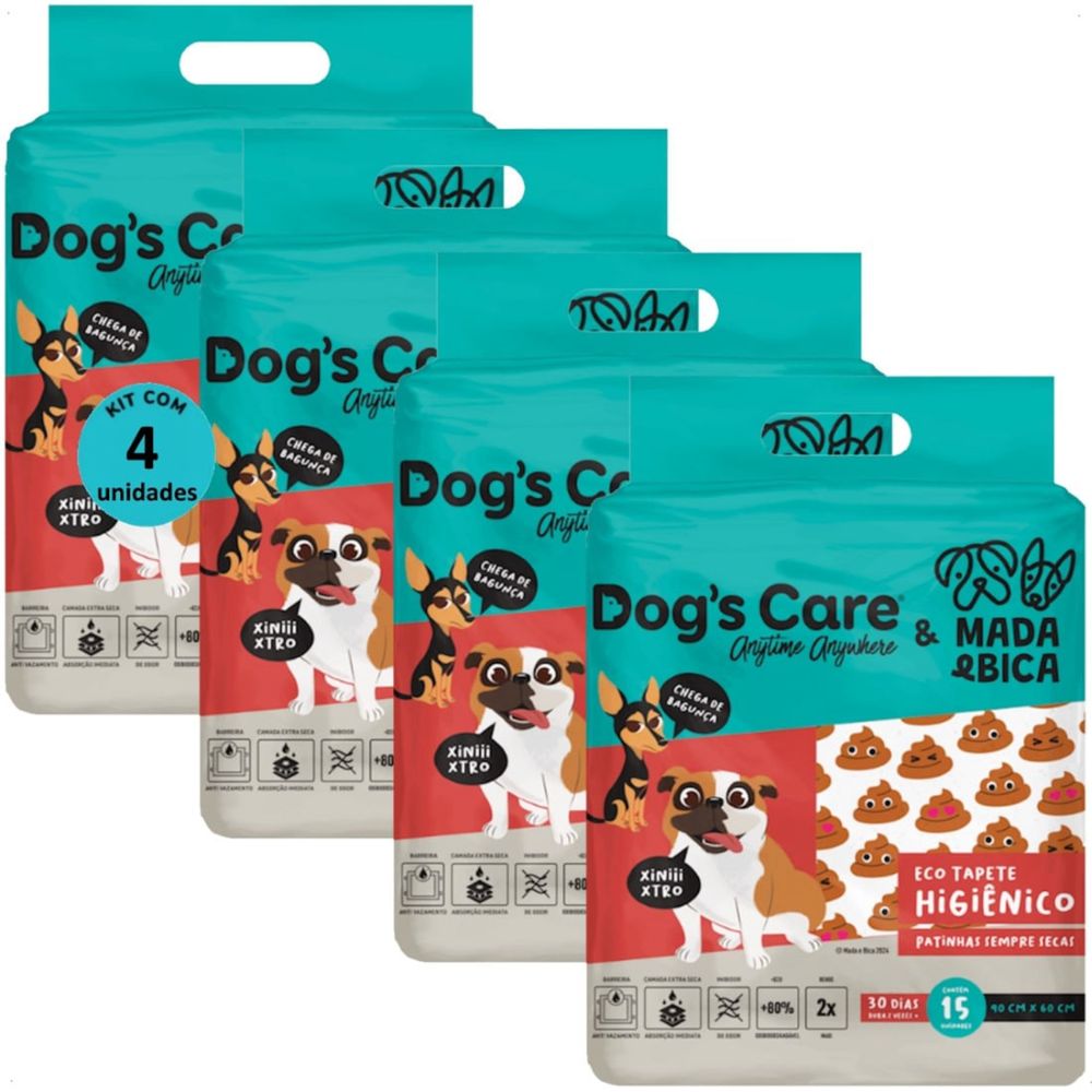 TAPETE HIGIÊNICO DOGS CARE FAMÍLIA MADA E BICA 15 UN 90X60 CM KIT COM 4