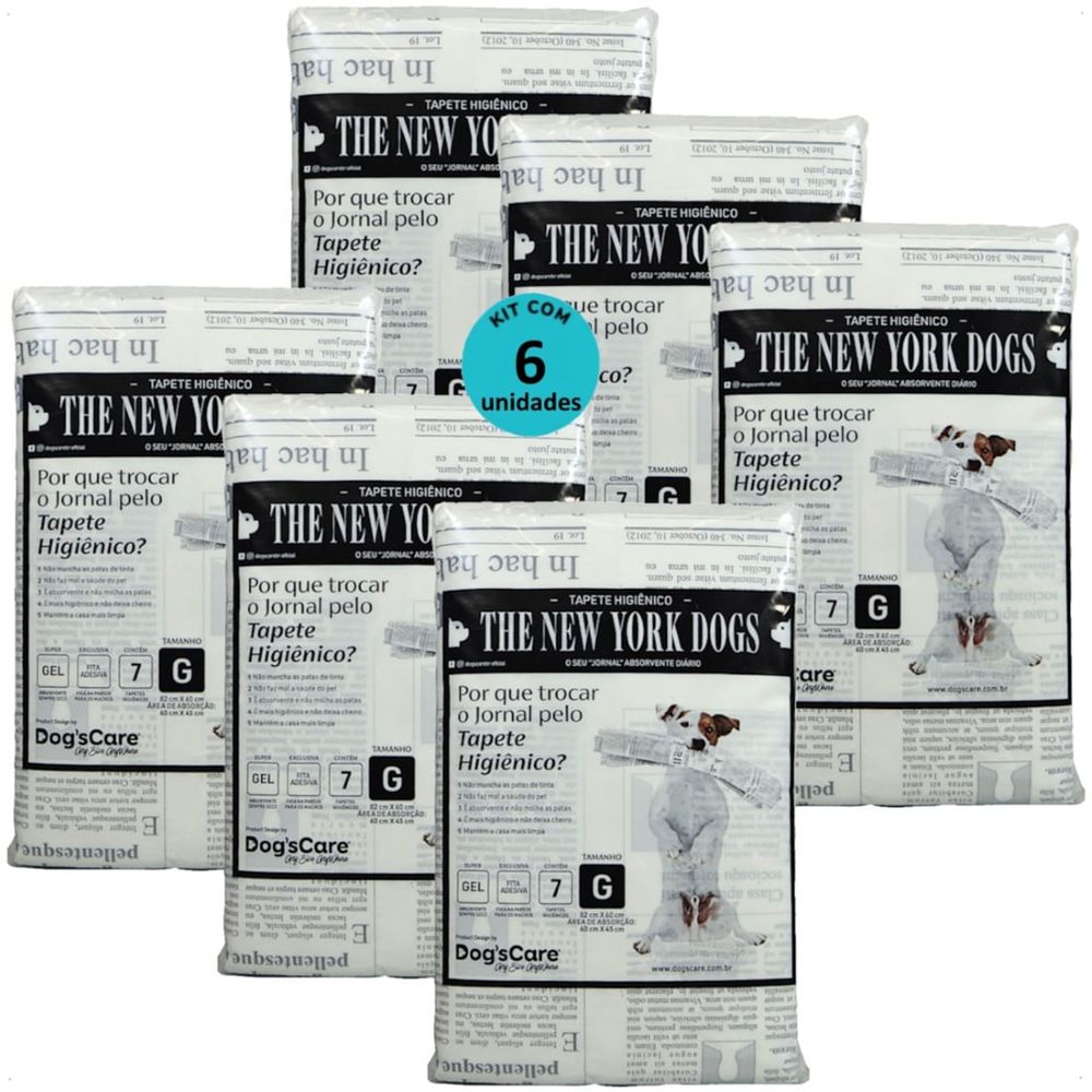 TAPETE HIGIÊNICO THE NEW YORK DOGS TAMANHO G 7 UN 82X60 CM KIT COM 5