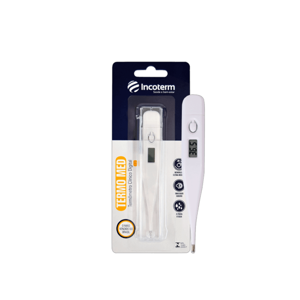 O Termômetro Clínico Digital Termomed Incoterm é um produto verificado e aprovado pelo INMETRO com precisão e qualidade comprovada. Produto de fácil utilização, durável e com resultados confiáveis.É à prova d’água, possui indicador sonoro com alertas diferenciados para temperatura normal e febril, sua tomada de temperatura é cerca de 1 minuto. Além disso, conta com uma função auto-desligamento que faz com que o aparelho desligue após 10 minutos sem uso, economizando, assim, a bateria e prolongando sua vida útil. É perfeito para uma medição precisa da temperatura e controle da febre.