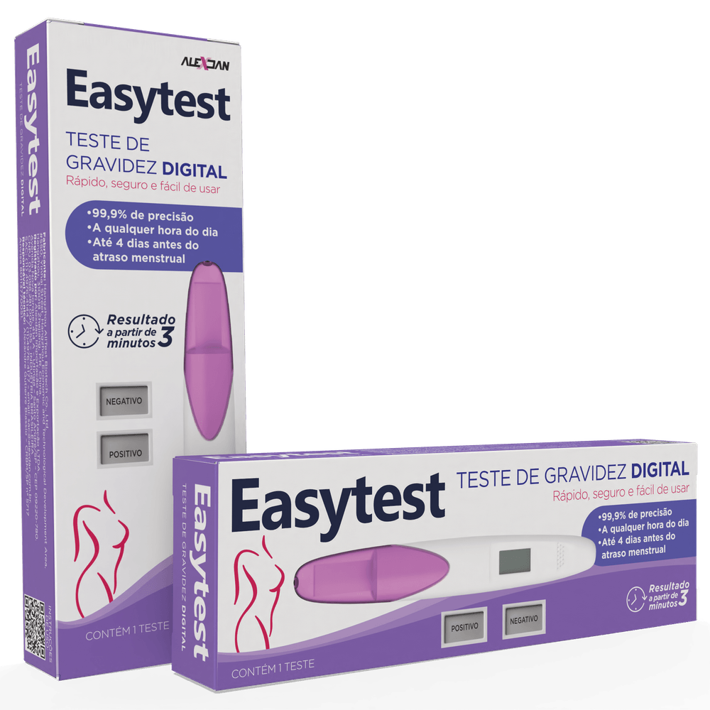 O Easy Test Gravidez Digital é um autoteste prático e moderno que detecta a presença do hormônio hCG na urina, indicando de forma clara se há ou não gravidez. Com visor digital que apresenta o resultado em texto (“Positivo” ou “Negativo”), ele elimina dúvidas de interpretação, trazendo mais segurança e tranquilidade no momento da descoberta. Com sensibilidade de 25 mUI/mL e precisão superior a 99%, o teste fornece o resultado entre 3 e 5 minutos, podendo ser utilizado a partir do primeiro dia de atraso menstrual. Simples, rápido e intuitivo, o Easy Test Gravidez Digital devolve autonomia à mulher, permitindo realizar o teste no conforto e privacidade de casa.