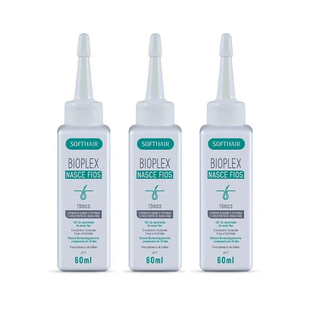 Bioplex Nasce fios combate a queda e estimula o nascimento de novos fios!Se você está procurando um tônico para estimular o crescimento dos seus cabelos, está no produto certo! O Tônico Bioplex Nasce Fios é especializado e formulado para promover o crescimento saudável dos fios, proporcionando resultados visíveis e duradouros. Combinando ingredientes de alta qualidade o Bioplex Nasce Fios é a escolha ideal para quem deseja cabelos mais volumosos e fortes.A fórmula exclusiva contém uma combinação poderosa de Biotina, Cafeína, Vitaminas do Complexo B e nutrientes revitalizantes. Esses ingredientes trabalham em sinergia para nutrir os folículos capilares, proporcionando força, resistência, elasticidade e saúde aos fios de dentro para fora. Além disso, age diretamente no couro cabeludo, penetrando, e reativando o funcionamento dos bulbos existentes. Ajuda a preencher falhas causadas por perda e queda dos fios, eliminando fraqueza, quebra e ressecamento excessivo dos cabelos.E o melhor! Não possui efeito vasodilatador e não altera o metabolismo do organismo.Age diretamente na reversão dos principais tipos de perda de cabelos: Perda frontal (entradas) | Perda de zona superior (coroa) | Perda Geral e afinamento dos fios | Cabelos ralos.Indicação de uso:Indicado para cuidado profundo do couro cabeludo e bulbo capilar, prevenção da queda acentuada, acelera o crescimento e o nascimento de novos fios.ANVISAProcesso: 25351.194431/2018-14 AUT/MS 2.01236.1Volume: 60mlModo de usoCom os cabelos limpos, aplique o produto no couro cabeludo e massageie em movimentos circulares até total absorção. Agite antes de usar. Pode ser usado diariamente de 1 a 3x no dia.Ingredientes: Aqua (Água), Coffea Arabica Seed Oil (Óleo Da Semente De Café), Rose Extract (Extrato De Rosa), Glycyrrhiza Glabra Rhizome/Root (Rizoma/Raiz De Alcaçuz), Hydrolyzed Rhodophycea Extract, Menthol (Mentol), Biotin (Biotina), Panthenol (Pantenol), Cichorium Intybus Leaf Extract (Extrato Da Folha De Cichorium Intybus), Bertholletia Excelsa Seed Oil (Óleo Da Semente De Castanha-Do-Brasil), Propylene Glycol (Propilenoglicol), Dmdm Hydantoin (Dimetilidantoína), Parfum (Perfume), Butylphenyl Methylpropional (Butilfenil Metilpropio[1]Nal), Alpha-Isomethyl Ionone, Benzyl Alcohol (Álcool Benzílico), Benzyl Benzoate (Benzoato De Benzila), D-Limonene, Hexyl Cinnamal, Hydroxyisohexyl 3-Cyclohexene-Carboxaldehyde, Linalool, Methylisothiazolinone (Metilisotiazolinona).--------------------------------------Tags de pesquisatonico bioplex, bioplex soft hair, tônico bioplex, soft hair bioplex nasce fios, bioplex nasce fios tonico, tônico bom para cabelo, melhor tônico capilar crescimento, tônico pro cabelo crescer, tônicos capilares para queda de cabelo, tonicos para queda de cabelos, tonico para crescimento de cabelos, tônico capilar serve para quê, tonico bom para crescimento, tonico capilar para crescimento e queda, melhores tonico capilar para crescimento, estimulador de crescimento de cabelo, produto para crescimento de fios, tônico capilar para queda de cabeloTônico para cabelos mais fortes, tratamento para cabelos ralos, tônico para combater a calvícieSolução para cabelos finos e sem volume, tônico para estimular a regeneração capilar, tônico para acelerar o crescimento dos cabelos