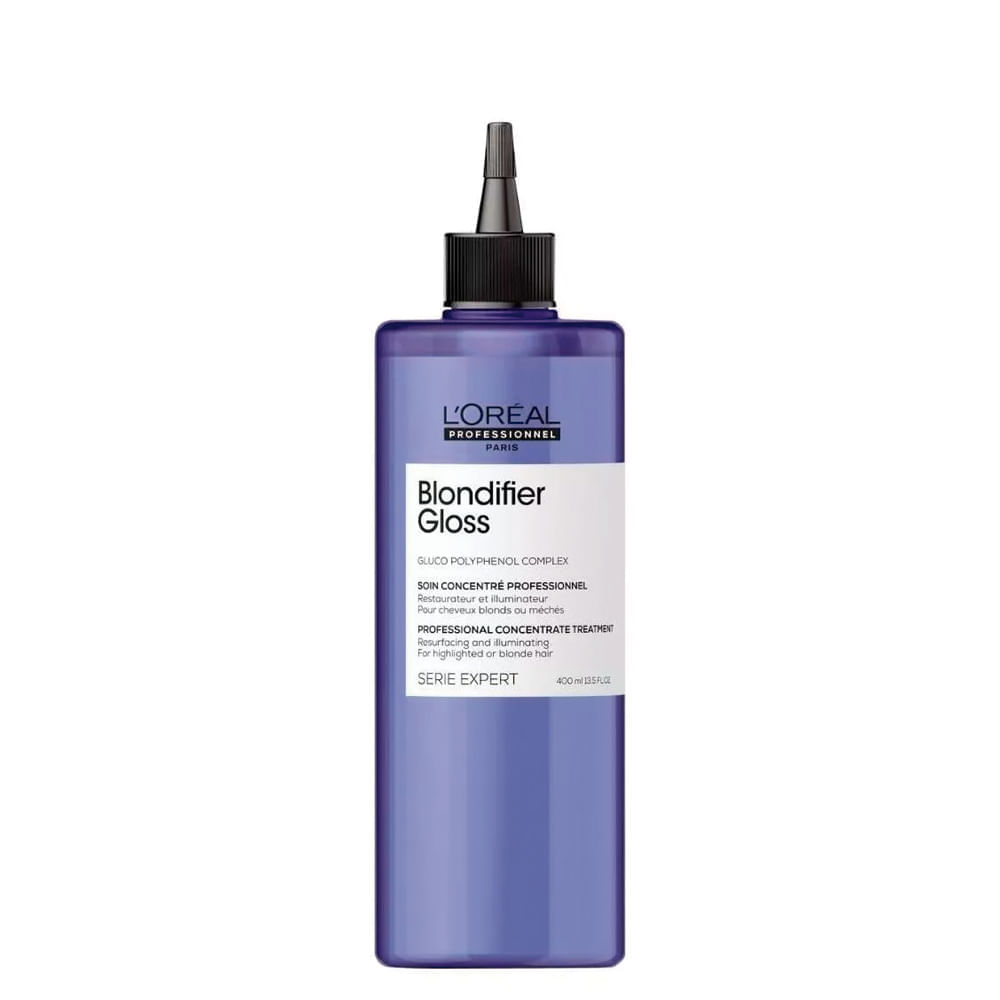 Tratamento L'Oréal Professionnel Concentré Blondifier Gloss conta com uma fórmula enriquecida com Complexo Gluco Polifenol, que fortalece a fibra capilar e repõe os lipídios perdidos. Desenvolvido especialmente para tratar fios sensibilizados após processos de coloração e descoloração. Possui também ação antioxidante, protegendo o cabelo contra radicais livres.