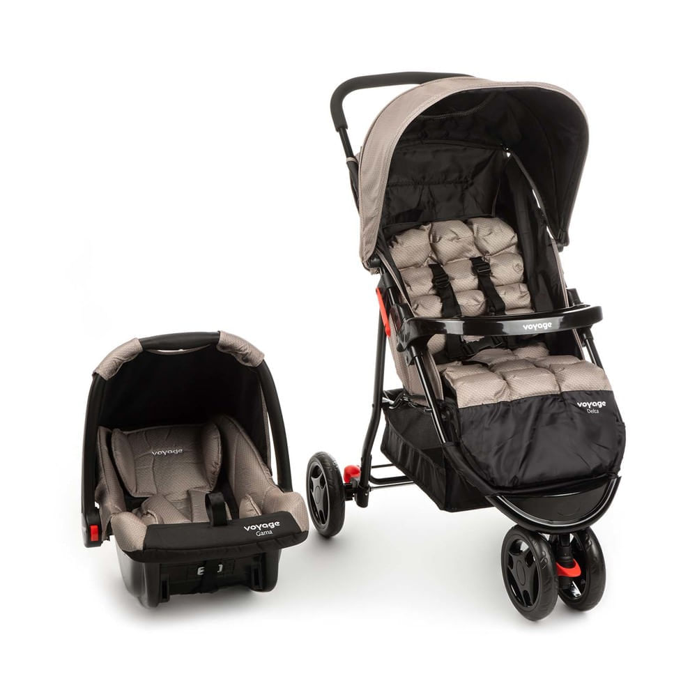 Acompanha bebê conforto acoplável. O Carrinho Delta da Voyage é um carrinho de três rodas, com barra frontal e um confortável colchonete acolchoado para acomodar crianças dos 0 ao 15 kg. Possui cinto de segurança de 5 pontos,
