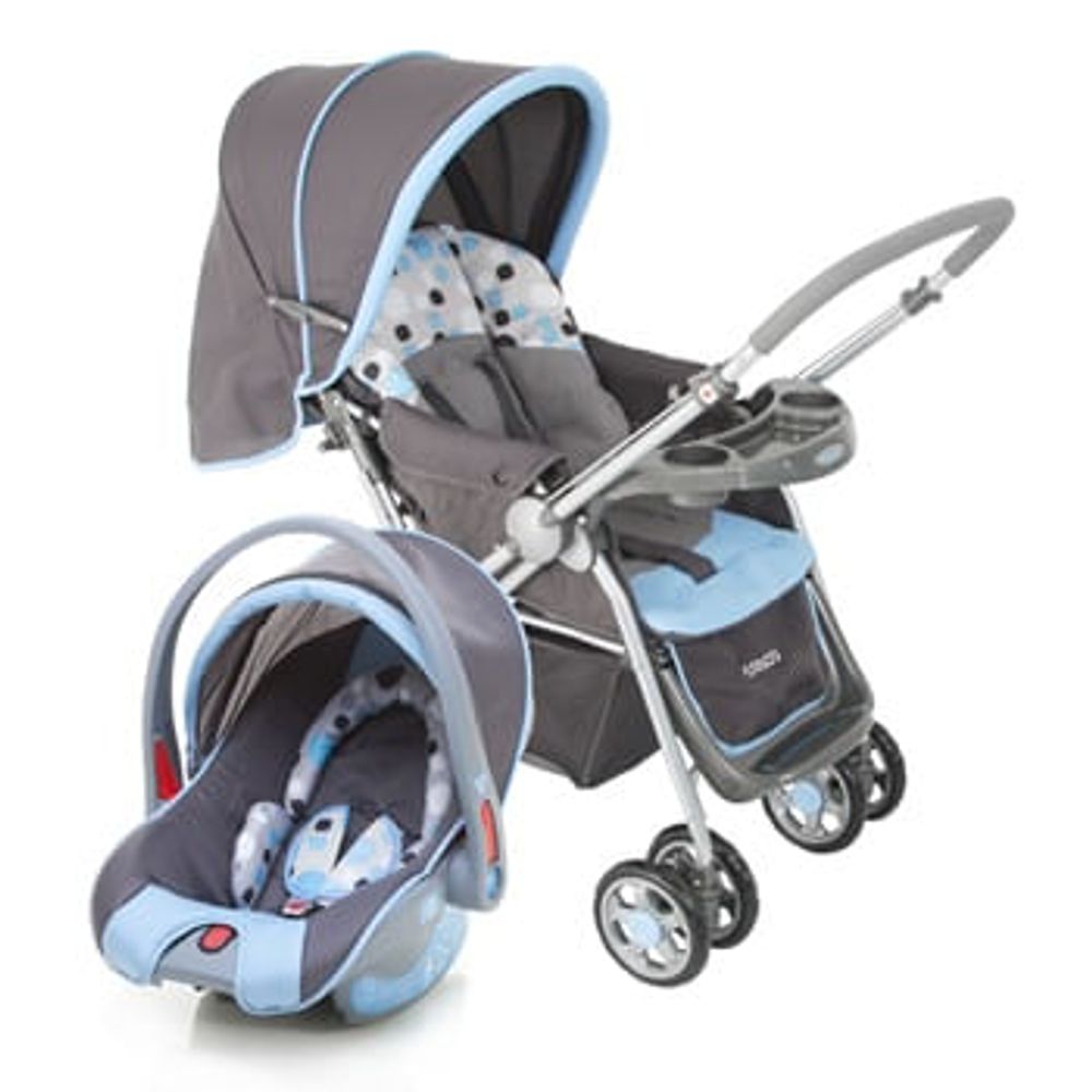 Carrinho aprovado pelo INMETRO conforme a norma ABNT NBR 14.389 para crianças do nascimento aos 15kg e bebê conforto provado pelo INMETRO conforme a norma ABNT NBR 14.400 para crianças do nascimento aos 13kg (Grupo 0+).