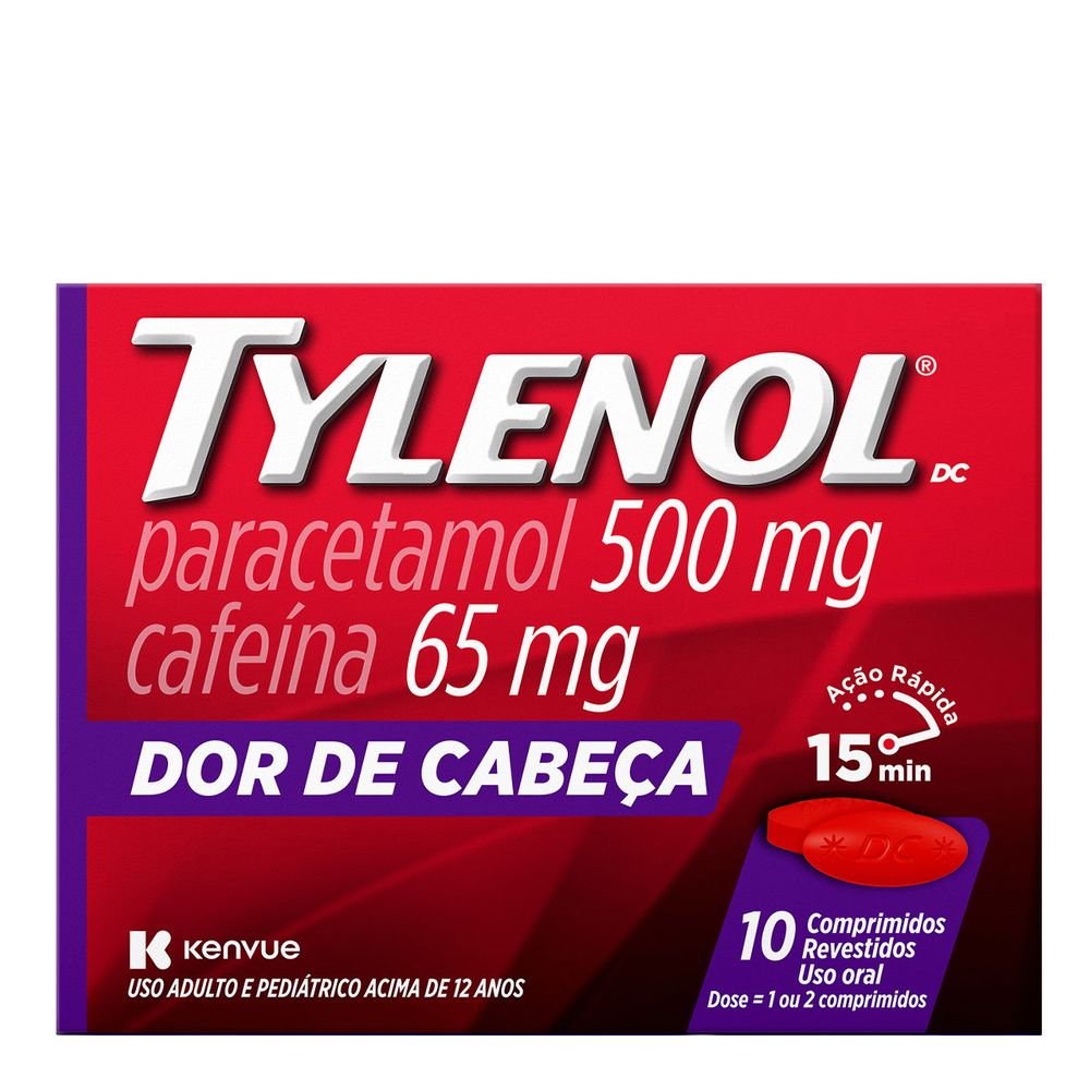 Analgésico Tylenol Dor de Cabeça 500mg + 65mg 10 Comprimidos Revestidos