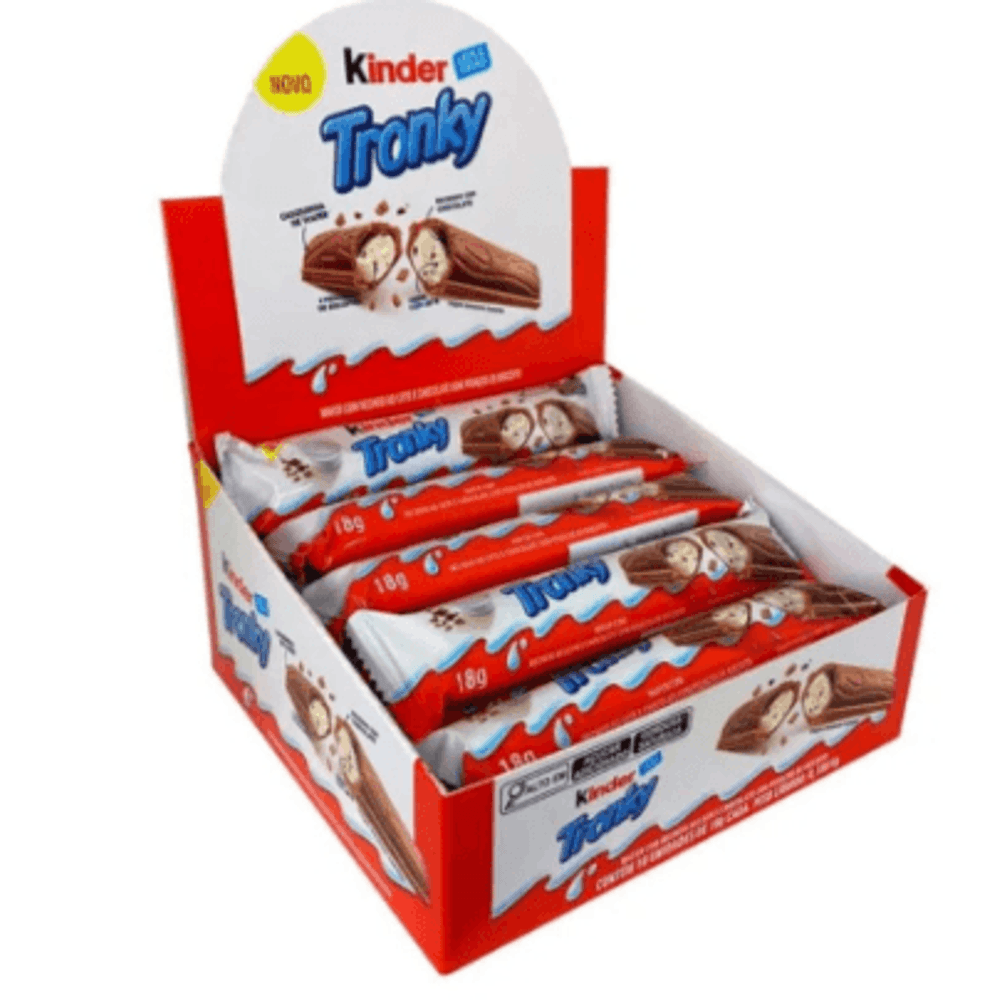Kinder Tronky deixa o momento da pausa ainda leve e mais gostoso, renovando minhas energias. Kinder Tronky oferece uma deliciosa combinação de várias texturas: uma casquinha de wafer crocante, com o recheio do autêntico chocolate Kinder, um delicioso creme com leite e pedacinhos de biscoitos crocantes.Kinder Tronky uma deliciosa pausa na sua rotina!