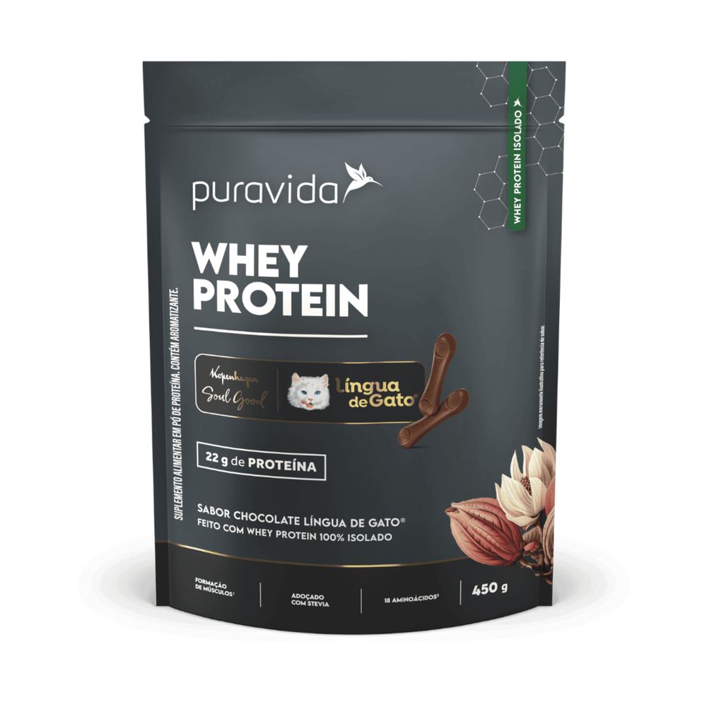 Whey Protein Isolado Chocolate Língua De Gato 450g Puravida
